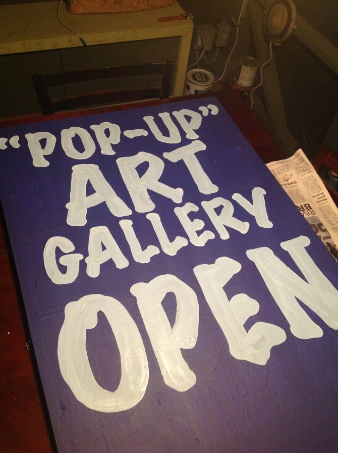 Thursday, Sept. 19. Tonight I made a sign to place in the front of my shop tomorrow for my Art In A Shoebox Project event.